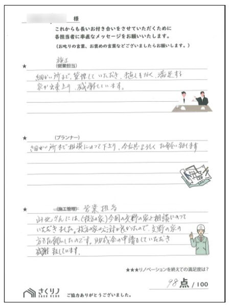 お客様の声 手書きアンケート
