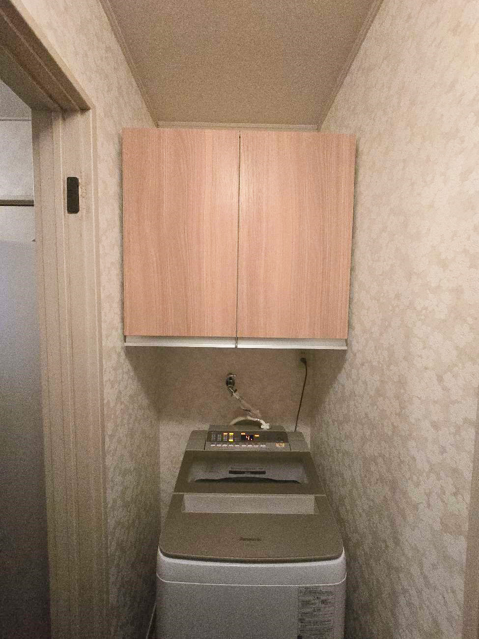 洗濯機上のデッドスペースが「主役」に!温もりを感じる造作吊り戸棚