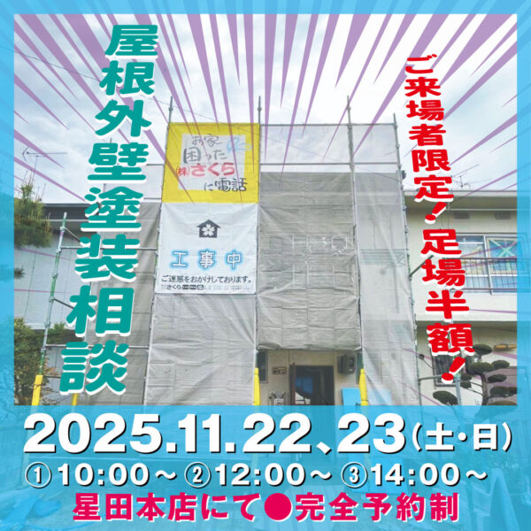 両日14時~15時開催の外壁セミナーは、完全ご予約制となっておりますので、まずはお気軽に事前お問合せ下さい♬