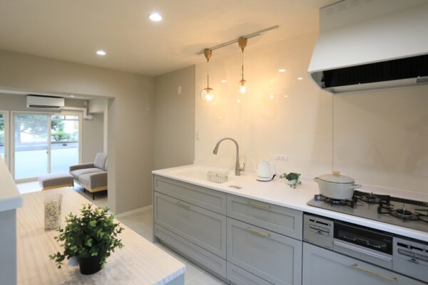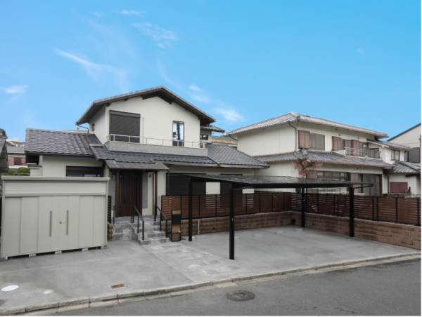 大阪府交野市のM様邸は、将来の車椅子生活を見据えた約2000万円・5か月のリノベーション。外構は段差を解消し、スロープ設置に備えた玄関に。LDKは増築して明るく広々とした空間に畳コーナーをプラス。キッチンは対面式で介助しやすい動線を確保しました。浴室やトイレも余裕ある設計で、介護時にも安心。デザイン性と機能性を両立した“終の住処”に、ご夫婦も大満足のご様子です。
