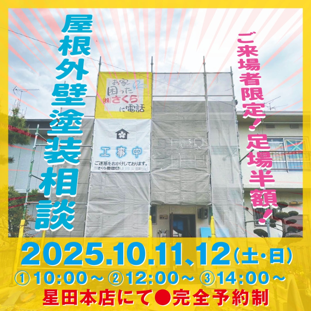 大阪府枚方市・交野市のリフォームなら さくらリフォーム > イベント情報 >  大切な家を守る! 屋根・外壁塗装の重要性とは? 屋根外壁塗装相談会~ご来場者限定足場半額!