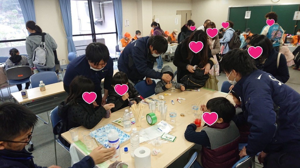 お子様達に交じって、楽しそうにスライム作ってるスタッフ浦戸。