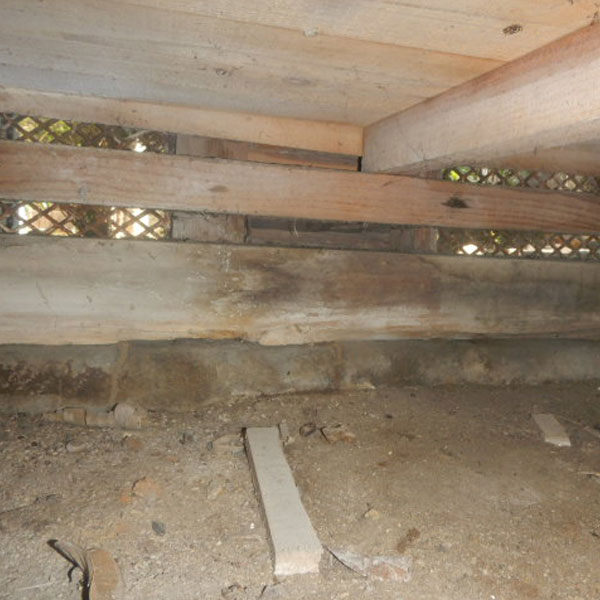 1. 床下全体の目視確認(蟻道・食害・カビの有無)