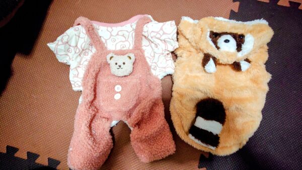 先日、海外通販ショップから、ワンちゃんたちの冬服が届きました! 早速試着する事に♬     背中にクマさんの洋服は、モコモコでフワフワしてます。   アライグマの洋服も、モコモコしてて暖かそう!   毎朝6時の散歩は、身に染みる寒さなので、ヒートショックが怖くてモコモ…
