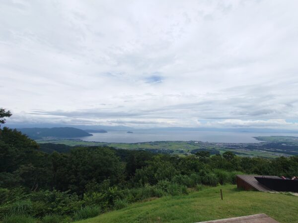 木々の香りを嗅ぎながら、山頂から見る琵琶湖の景色。