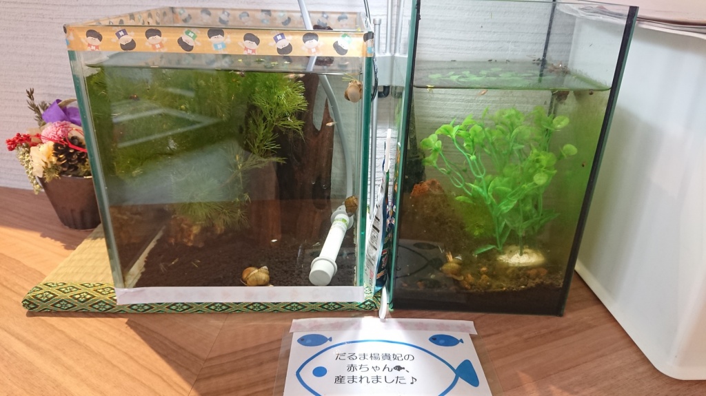 右は孵化して間もない子供達水槽ヽ(^o^)丿